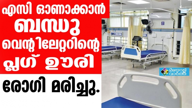 എയര് കൂളര് പ്രവര്ത്തിപ്പിക്കുന്നതിനായി വെന്റിലേറ്ററിന്റെ വൈദ്യുതി ബന്ധം വിച്ഛേദിച്ചു... രോഗി മരിച്ചു..