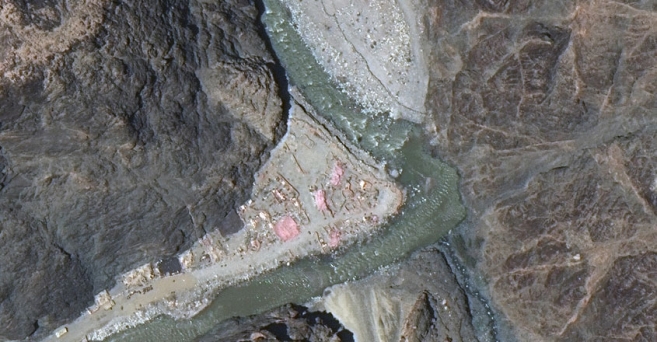 ചില പിങ്ക് ടാർപോളിനുകൾക്കു പകരം കറുത്ത നിറമുള്ളവ നൽകി. പ്രദേശമാകെ ‘വൃത്തിയാക്കിയതായി’ തോന്നും. പാറ കൊണ്ടുള്ള കോട്ടകൾ കാണാനാകില്ല. പാറമുഖത്തിനടുത്തുള്ള ഷെൽട്ടറുകളുടെ നിര ഇതിലും ദൃശ്യമാണ്. നദിയുടെ എതിർ കരയിൽ (ഇന്ത്യൻ സൈന്യത്തിന്റെ സ്ഥാനം) സ്ഥാപിച്ചിരിക്കുന്ന കൽമതിലിന്റെ ഒരു ഭാഗം വെള്ളത്തിൽ മുങ്ങിയിട്ടുണ്ട്. മതിൽ വ്യക്തമായി കാണാനുമാവില്ല.