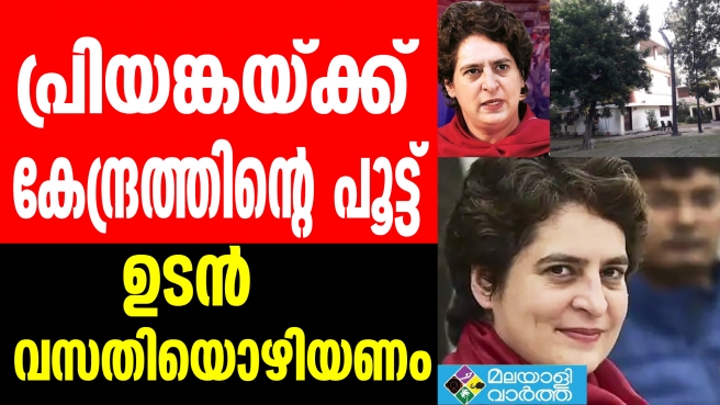 ഡല്ഹിയിലെ ലോധി എസ്റ്റേറ്റിലെ 35-ാം നമ്പര് വീട്ടിലാണ് പ്രിയങ്ക താമസിക്കുന്നത്. ഓഗസ്റ്റ് ഒന്നിനുശേഷം വസതി ഒഴിഞ്ഞില്ലെങ്കില് നിയമപ്രകാരമുള്ള പിഴ ഈടാക്കുമെന്നും ഉത്തരവില് സൂചിപ്പിക്കുന്നു. മുന് പ്രധാനമന്ത്രിക്കും കുടുംബത്തിനും അഞ്ച് വര്ഷം വരെ സുരക്ഷ നല്കിയാല് മതി എന്നാണ് കേന്ദ്ര സര്ക്കാരിന്റെ പുതിയ തീരുമാനം.