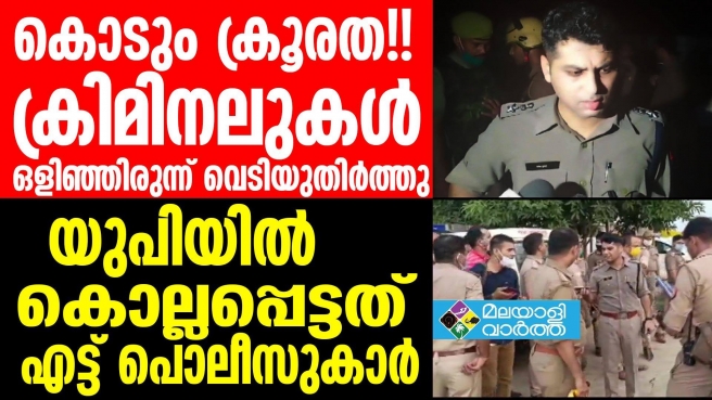 ഉത്തര്പ്രദേശിലെ കാന്പുരില് ക്രിമിനലുകളുമായുള്ള ഏറ്റുമുട്ടലില് എട്ടു പൊലീസുകാര് കൊല്ലപ്പെട്ടു... കൊടും ക്രൂരത ക്രിമിനലുകള് ഒളിഞ്ഞിരുന്ന് വെടിയുതിര്ത്തു