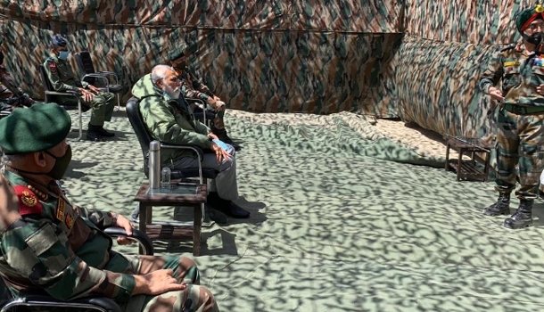 ചീഫ് ഡിഫന്സ് സ്റ്റാഫ് ബിപിന് റാവത്ത്, കരസേനാ മേധാവി എം.എം.നരവനെ എന്നിവര് പ്രധാനമന്ത്രിയെ അനുഗമിക്കുന്നുണ്ട്. പ്രതിരോധ മന്ത്രി രാജ്നാഥ് സിങ് ലഡാക്ക് സന്ദര്ശനം ഒഴിവാക്കിയതിന് പിന്നാലെയാണ് പ്രധാനമന്ത്രി അപ്രതീക്ഷിതമായി അവിടെ എത്തിയിട്ടുള്ളത്.