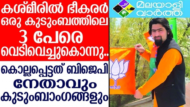 കശ്മീരില് ഭീകരര് ഒരു കുടുംബത്തിലെ 3 പേരെ വെടിവെച്ചുകൊന്നു..കൊല്ലപ്പെട്ടത് ബിജെപി നേതാവും കുടുംബാംഗങ്ങളും , ബന്ദിപോര ജില്ലയില് രാത്രി ഒമ്പത് മണിയോടെയായിരുന്നു സംഭവം