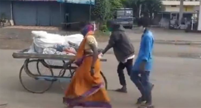 കോവിഡ് ഭീതി;ഭർത്താവിന്റെ മൃതദേഹം ഉന്തുവണ്ടിയിൽ ശ്മശാനത്തിലെത്തിച്ച് ഭാര്യ
