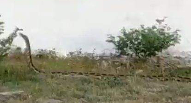 സുശാന്ത നന്ദ ഐഫ്എസാണ് ദൃശ്യങ്ങള് പങ്കുവെച്ചത്. ഇന്ത്യന് റോക്ക് പൈതണ് എന്നറിയപ്പെടുന്ന പാമ്ബിനെയാണ് മധ്യപ്രദേശില് കണ്ടെത്തിയത്. പത്ത് അടിവരെ വളരാന് കഴിയുന്നതാണ് അജ്ഗര് ഇനത്തില്പ്പെട്ട പെരുമ്ബാമ്ബിനെന്ന് സുശാന്ത നന്ദ പറഞ്ഞു പെരുമ്ബാമ്ബ് ഇഴഞ്ഞു നീങ്ങുന്നതാണ് ദൃശ്യങ്ങളില് ഉളളത്. ദൃശ്യത്തിന്റെ അവസാനം തല ഒരാള്ക്ക് മുകളില് വരെ ഉയര്ത്തുന്നത് ദൃശ്യങ്ങളില് വ്യക്തമാണ്. അനാക്കോണ്ടയെക്കാൾ വലിയൊരു പാമ്പിനെ നമ്മുടെ നാട്ടിൽ കണ്ടെത്തിയിരിക്കുന്നത് അല്പം അതിശയം ഉളവാക്കിയിരിക്കുന്നു.