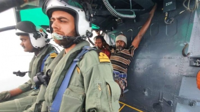 തലകീഴായി മറഞ്ഞു കിടന്നിരുന്ന മീന്വള്ളത്തില് നിന്നും മത്സ്യത്തൊഴിലാളികളെ രക്ഷപ്പെടുത്തി നാവികസേനയുടെ ഹെലികോപ്ടർ
