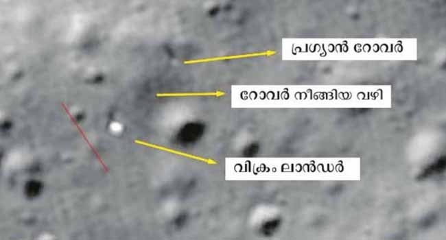 തകര്ന്നു വീണ ലാന്ഡറില് നിന്ന് റോവര് പുറത്തിറങ്ങി സഞ്ചരിച്ചുവെന്ന അവകാശവാദ വുമായി ചെന്നൈ സ്വദേശി, ചിത്രങ്ങള് സഹിതം ഐഎസ്ആര്ഒയ്ക്ക് വിവരം കൈമാറി, ഇക്കാര്യം പരിശോധിക്കുമെന്ന് ഐഎസ്ആര്ഒ