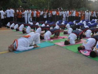 ത്രിവര്ണ സ്കാര്ഫും വെള്ള വസ്ത്രവുമായി എത്തിയ നരേന്ദ്രമോഡി വജ്രാസനം, പത്മാസനം എന്നിവ വിദ്യാര്ഥികള്ക്കൊപ്പം പരിശീലിച്ചു. ഡല്ഹിയില് രാജ്പഥില് കനത്ത സുരക്ഷയോടെയാണ് യോഗദിനം ആചരിച്ചത്. ഒരുവേദിയില് ഏറ്റവും കൂടുതല് പേര് യോഗ ചെയ്തതിന്റെ ലോക റെക്കോര്ഡും രാജ്പഥിലെ ചടങ്ങ് പ്രതീക്ഷിക്കുന്നുണ്ട്.