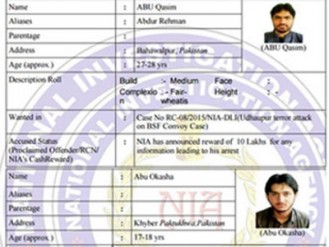 ഇവരെ കുറിച്ച് കൂടുതല് വിവരങ്ങള് നല്കുന്നവര്ക്ക് എന്ഐഎ പാരിതോഷികവും പ്രഖ്യാപിച്ചു. ഉധംപൂരില് ആക്രമണം നടത്താന് അതിര്ത്തി കടന്ന് നാലു ഭീകരര് എത്തിയിട്ടുണ്ടെന്നാണ് എന്ഐഎയ്ക്കു ലഭിച്ച വിവരം. മുഹമ്മദ് നവേദിനെ നാട്ടുകാര് പിടികൂടി സൈന്യത്തിനു കൈമാറുകയായിരുന്നു. കൂടുതല് വിവരങ്ങള് പുറത്തറിയുന്നതിനായി എന്ഐഎ നവേദിനെ നുണപരിശോധനയ്ക്കു വിധേയനാക്കുകയും ചെയ്തിരുന്നു.