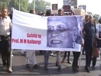 പ്രതിഷേധവുമായി എഴുത്തുക്കാര്, കേന്ദ്ര സാഹിത്യ അക്കാദമിക്ക് മുന്നില് എഴുത്തുകാരുടെ പ്രതിഷേധം