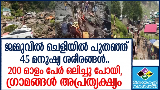ജമ്മു കശ്മീരിലെ മേഘവിസ്ഫോടനം.. 44 മൃതദേഹങ്ങൾ ഇതുവരെ കണ്ടെടുത്തു...പ്രദേശത്ത് രക്ഷാപ്രവർത്തനം തുടരുകയാണ്...മുന്നൂറോളം തീർഥാടകർ ഒഴുകിപ്പോയി..