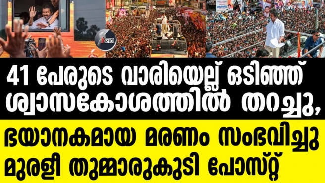 ഇപ്പോഴിതാ മുരളീ തുമ്മാരുകുടി ഈവിഷയത്തിൽ ഒരു പോസ്റ്റാണ് പങ്കുവച്ചിരിക്കുന്നത് . പലപ്പോഴും ഇത്തരത്തിലുള്ള പല ദുരന്തങ്ങളെ കുറിച്ചുള്ള മുന്നറിയിപ്പുകൾ അദ്ദേഹം പങ്കുവയ്ക്കാറുണ്ട് . ഈ പോസ്റ്റ് വായിക്കാം ..വീണ്ടും ഒരു ആൾക്കൂട്ട അപകടം...തമിഴ്നാട്ടിൽ ഒരു സിനിമാ താരത്തിന്റെ രാഷ്ട്രീയ റാലിയിൽ തിക്കിലും തിരക്കിലും പെട്ട് മുപ്പതിലധികം ആളുകൾ മരിച്ച വാർത്ത കാണുന്നു. ഇതിപ്പോൾ ഇന്ത്യയിൽ പ്രതിവർഷം ചുരുങ്ങിയത് ഒന്ന്, പലപ്പോഴും അതിലധികം സംഭവങ്ങൾ ഇത്തരത്തിൽ ഉണ്ടാകാറുണ്ട്.അതീവ ദാരുണമാണ് തിരക്കിൽ പെട്ടുള്ള മരണങ്ങൾ. ഒന്നാമത് നമ്മൾ ഒരു സ്ഥലത്ത് രാഷ്ട്രീയത്തിനോ സംഗീതത്തിനോ സ്പോർട്സിനോ