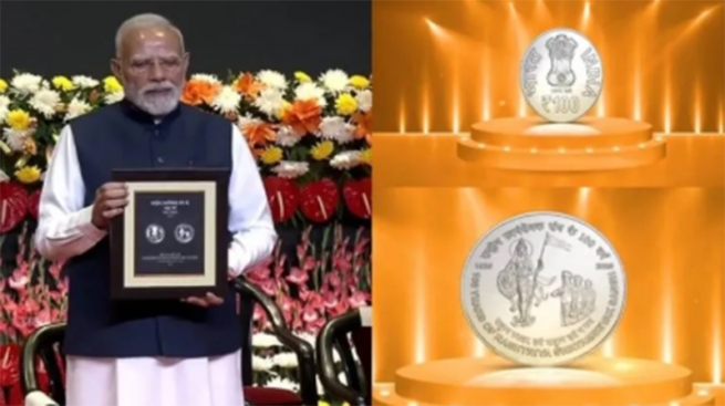 നൂറുരൂപ നാണയവും സ്റ്റാമ്പും പുറത്തിറക്കി പ്രധാനമന്ത്രി നരേന്ദ്രമോദി