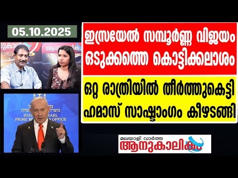 ഇസ്രയേൽ സമ്പൂർണ്ണ വിജയം ഒടുക്കത്തെ കൊട്ടിക്കലാശം ഒറ്റ രാത്രിയില് തീര്ത്തുകെട്ടി ഹമാസ് സാഷ്ടാംഗം കീഴടങ്ങി