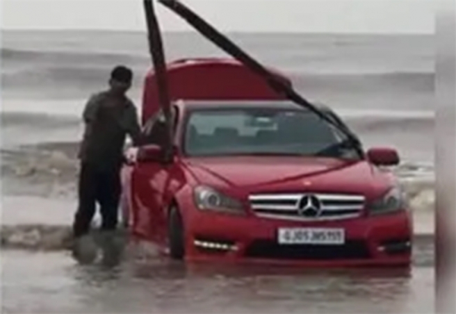 സൂറത്തിലെ ദൂമസ് ബീച്ചില് വാഹനങ്ങള്ക്ക് പ്രവേശനം നിരോധിച്ചിട്ടുള്ള മേഖലയിലാണ് റീല്സ് ചിത്രീകരണത്തിനായി കാര് ഇറക്കിയത്. മെഴ്സിഡസ് കാര് ബീച്ചിലേക്ക് ഓടിച്ചുകയറ്റുന്നത് ഷൂട്ട് ചെയ്യാന് ശ്രമിക്കുന്നതിനിടെയാണ് വാഹനം വാട്ടര്ലൈനിനടുത്തുള്ള മൃദുവായ മണലില് താഴ്ന്നത്. തുടര്ന്ന് സൂറത്ത് പൊലീസ് അന്വേഷണം ആരംഭിച്ചു. ദൂമസ് ബീച്ചില് വാഹനങ്ങള്ക്ക് നിരോധനം ഏര്പ്പെടുത്തിയിട്ടുണ്ടെങ്കിലും നിയമലംഘനങ്ങള് തുടരുകയാണ്.