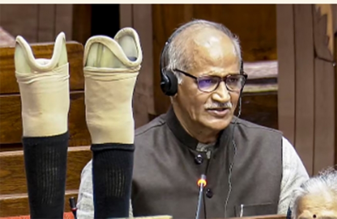 സിപിഎമ്മിനെതിരെ സംസാരിച്ച് കൃത്രിമക്കാലുകള് ഊരിയെടുത്ത് രാജ്യസഭയിലെ ഡെസ്കില് വച്ച് സദാനന്ദന്