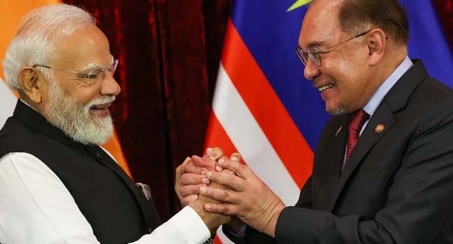 ഇന്ത്യയ്ക്കും മലേഷ്യയ്ക്കും ഇടയിലെ സഹകരണം ശക്തമാക്കാന് പത്ത് നിര്ണായക കരാറുകള് സന്ദര്ശനവേളയില് ഒപ്പുവച്ചു. പ്രധാനമന്ത്രി നരേന്ദ്ര മോദിക്ക് മലേഷ്യന് പ്രധാനമന്ത്രി അന്വര് ഇബ്രാഹിമിന്റെ നേതൃത്വത്തില് ഹൃദ്യമായ വരവേല്പ്പാണ് നല്കിയത്. ഇന്നലെ മലേഷ്യന് പ്രധാനമന്ത്രി വിമാനത്താവളത്തില് നേരിട്ടെത്തി നരേന്ദ്ര മോദിയെ സ്വീകരിച്ചിരുന്നു. പിന്നീട് മോദിക്ക് മലേഷ്യയുടെ ആചാരപരമായ വരവേല്പ്പും നല്കി.