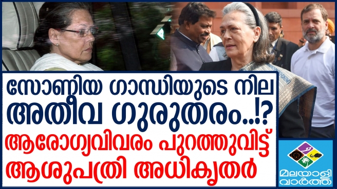 സോണിയ ആശുപത്രിയിൽ തുടരുന്നു.. ഒരു സംഘം ഡോക്ടർമാർക്ക് ആൻറിബയോട്ടിക്കുകൾ നൽകുന്നുണ്ട്, നിലവിൽ അവരുടെ ആരോഗ്യനില സ്ഥിരമാണ്..ആരോഗ്യവിവരം പുറത്തുവിട്ട് അധികൃതർ..