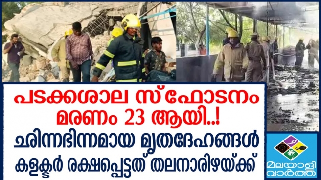 വിരുദുനഗറില് പടക്കനിര്മ്മാണ ശാലയിലുണ്ടായ സ്ഫോടനം..മരിച്ചവരുടെ എണ്ണം 23 ആയി ഉയര്ന്നു.. കണ്ടെടുക്കുന്ന മൃതദേഹങ്ങളില് പലതും തിരിച്ചറിയാനാവാത്ത വിധം ഛിന്നഭിന്നമായിട്ടുണ്ട്..