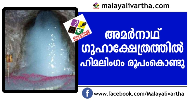 പ്രശസ്തമായ അമര്നാഥ് ഗുഹാക്ഷേത്രത്തില് ഹിമലിംഗം രൂപംകൊണ്ടു. ശ്രാവണ മാസത്തിലെ ശുക്ലപക്ഷാരംഭത്തോടെ പൗര്ണമി നാള് എത്തുമ്പോഴേക്കും ഹിമലിംഗം പൂര്ണരൂപത്തിലെത്തും. ഇതോടെ അമര്നാഥ് യാത്ര ജൂണ് 28 മുതല് ആരംഭിക്കുമെന്നാണ് കരുതുന്നത്. മുന്വര്ഷങ്ങളില് രൂപം കൊണ്ടതിനേക്കാള് ചെറുതാണ് ഇപ്പോഴുണ്ടായിരിക്കുന്ന ഹിമലിംഗം എന്നാണ് വിലയിരുത്തല്.