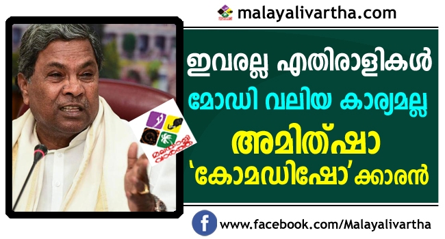 സംസ്ഥാനത്ത് മോഡിയ്ക്കോ അമിത്ഷായ്ക്കോ കാര്യമായ സ്വാധീനമില്ല. മോഡി പോലും വിഷയമല്ലാത്ത കര്ണാടകയില് അമിത്ഷാ എന്തു ചെയ്യാനാണെന്ന് സിദ്ധരാമയ്യ ചോദിച്ചു. മോഡിയുടെ ജനപ്രാതിയതയൊക്കെ വന് തോതില് ഇടിവ് സംഭവിച്ചു കൊണ്ടിരിക്കുകയാണ്. അപ്പോള് അമിത്ഷായ്ക്ക് എന്തു ജനപ്രിയത കൈവരിക്കാനാകുമെന്നാണ് കരുതേണ്ടെന്ന് സിദ്ധരാമയ്യ ചോദിക്കുന്നു.