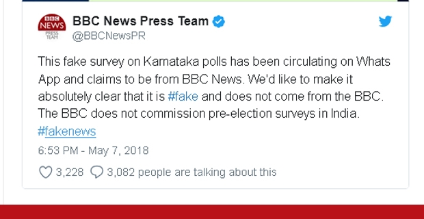 കര്ണാടക തെരഞ്ഞെടുപ്പ് ബി.ജെ.പിക്ക് അനുകൂലമെന്ന് ബി.ബി.സിയുടെ പേരില് വ്യാജ പ്രചരണം