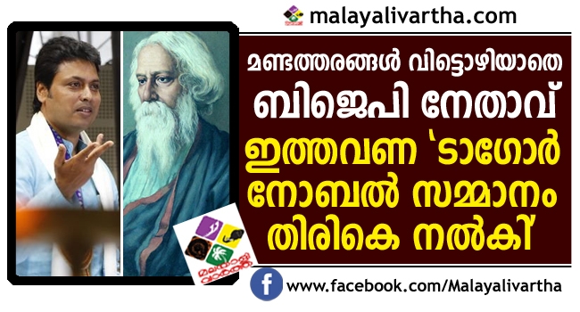 ഇതിഹാസ കാവ്യമായ മഹാഭാരതം എഴുതപ്പെട്ട കാലത്തും ഇൻറർനെറ്റും സാറ്റലൈറ്റ് സാങ്കേതികവിദ്യയും ഉണ്ടായിരുന്നു ; പിന്നാലെ ടാഗോറിന്റെ സർ പദവിയെ നോബൽ സമ്മാനമാക്കി ; വിടുവായത്തരം വിട്ടൊഴിയാതെ ബിജെപി നേതാവ്