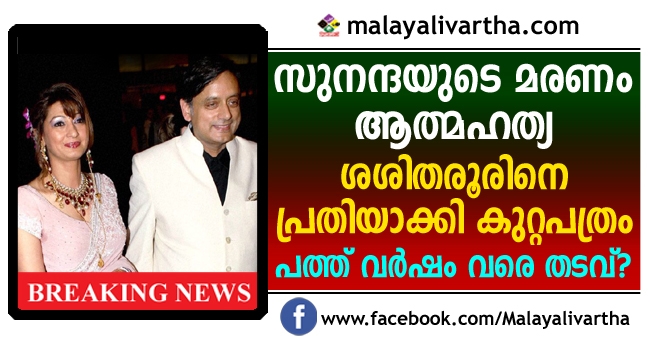 ആത്മഹത്യാകുറിപ്പില്ലാതെ ചുമത്തിയ ആത്മഹത്യാ പ്രേരണ കുറ്റം ; സുനന്ദയുടെ മരണം കൊലപാതകമല്ല ആത്മഹത്യ ; ശശി തരൂരിനെ പ്രതിയാക്കി ഡൽഹി പൊലീസ് പാട്യാല കോടതിയിൽ കുറ്റപത്രം സമർപ്പിച്ചു ; പത്തുവർഷം വരെ തടവ് ലഭിക്കാം