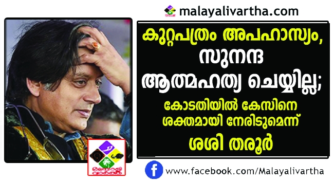 സുനന്ദ പുഷ്കര് മരിച്ച കേസില് തന്നെ പ്രതിയാക്കി ഡല്ഹി പോലീസ് സമര്പ്പിച്ച കുറ്റപത്രം അപഹാസ്യമാണെന്ന് ശശി തരൂര് എംപി. കോടതിയില് കേസിനെ ശക്തമായി നേരിടുമെന്നും സുനന്ദ ആത്മഹത്യ ചെയ്യില്ലെന്നും അദ്ദേഹം പ്രതികരിച്ചു.