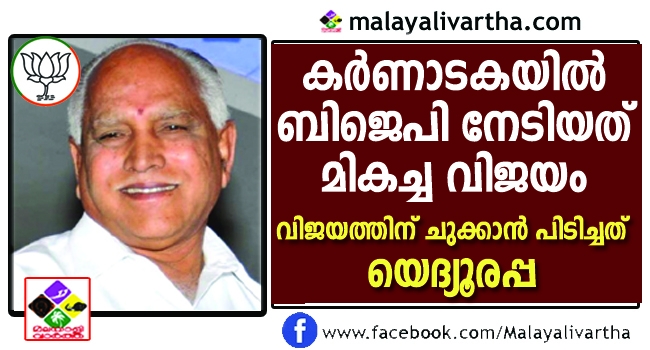 കര്ണ്ണാടകയില് ബിജെപി നേടിയത് മികച്ച വിജയം. കോണ്ഗ്രസ്സും ജനതാദളും പരസ്പരം മത്സരിച്ചത് ബിജെപി വിജയത്തിന് ഒരു ഘടകമായെന്ന് തന്നെ പറയാം. ബിജെപി യെ സംബന്ധിച്ച് അഴിമതി വിരുദ്ധ പോരാട്ടമാണ് പാര്ട്ടിയുടെ മുഖമുദ്ര. എന്നാല് കര്ണ്ണാടകയിലാകട്ടെ ബിജെപി യുടെ വിജയത്തിന് ചുക്കാന് പിടിച്ചത് അഴിമതി ആരോപണ വിധേയനായ യെദ്യൂരപ്പയാണ്. എന്നാല് കൃത്യമായ പ്രചാരണ പ്രവര്ത്തനങ്ങളിലൂടെ തങ്ങള്ക്കെതിരെയുള്ള ആരോപണങ്ങളെ മറികടക്കുന്നതിന് ബിജെപിക്ക് കഴിഞ്ഞു.