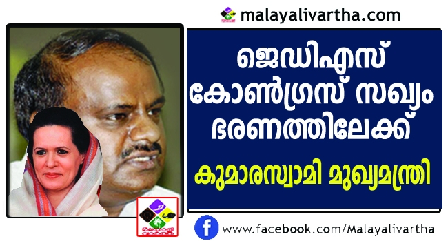 അപ്രതീക്ഷിത രാഷ്ട്രീയ നീക്കങ്ങള്ക്കൊടുവില് കര്ണാടകയില് ജെഡിഎസ് കോണ്ഗ്രസ് സഖ്യം ഭരണത്തിലേക്ക്; ജെഡിഎസ് കര്ണാടക അധ്യക്ഷന് എച്ച്.ഡി. കുമാരസ്വാമി മുഖ്യമന്ത്രിയാകും; രാഷ്ട്രീയം കളിച്ച് സംസ്ഥാന ഗവര്ണര് വജുഭായ് വാലായും