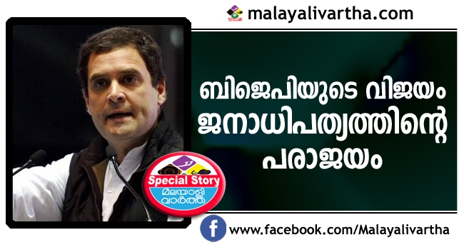 ഭരണഘടനയെ കൊഞ്ഞനംകുത്തിയാണ് കര്ണാടകത്തില് ബി.എസ്.യെദ്യൂരപ്പ മുഖ്യമന്ത്രിയായി സത്യപ്രതിജ്ഞ ചെയ്തത് ; ബിജെപിയുടെ വിജയം ജനാധിപത്യത്തിന്റെ പരാജയമെന്ന് രാഹുൽ ഗാന്ധി