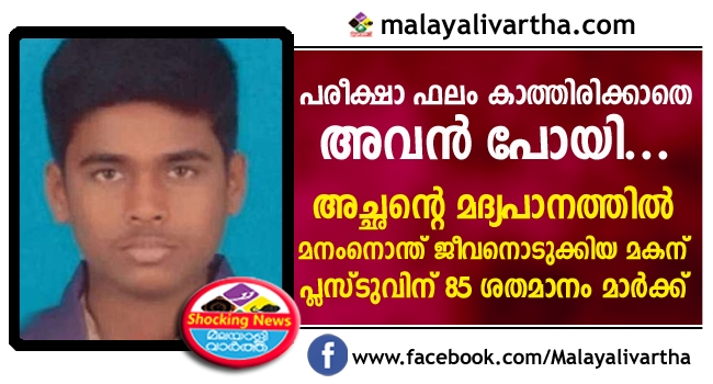 അച്ഛന്റെ മദ്യപാനത്തിൽ മനംനൊന്ത് ജീവനൊടുക്കിയ മകന് പ്ലസ്ടുവിന് 85 ശതമാനം മാര്ക്ക്