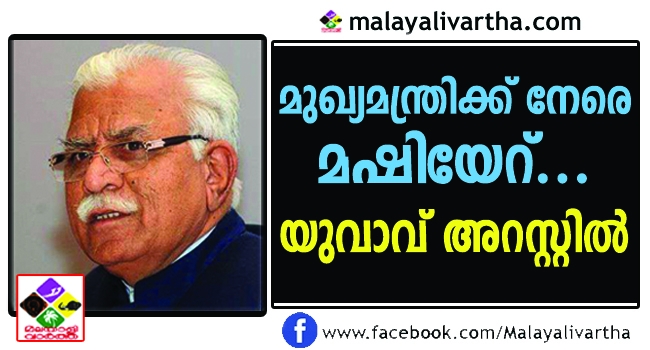 ഹരിയാന മുഖ്യമന്ത്രിക്ക് നേരെ മഷിയേറ് യുവാവിനെ അറസ്റ്റ് ചെയ്തു