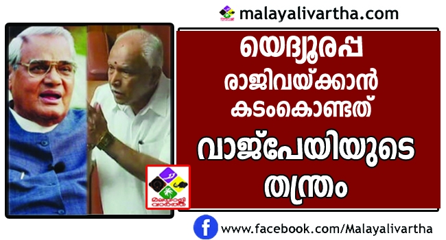 ഏറെ നാടകീയതയ്ക്കൊടുവില് യെദ്യൂരപ്പ രാജിവച്ചത് വാജ്പേയിയുടെ തന്ത്രം കടംകൊണ്ട്