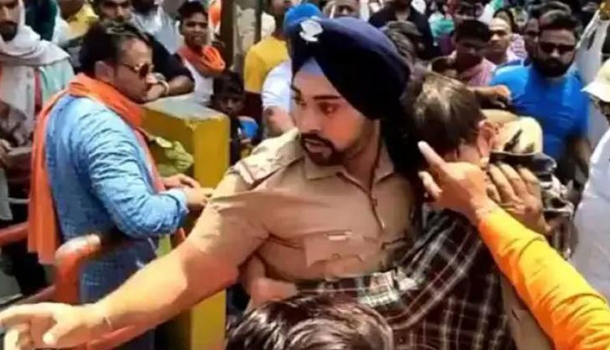 ആള്ക്കൂട്ട ആക്രമണത്തില് നിന്നും മുസ്ലീം യുവാവിനെ രക്ഷിച്ച് സിഖ് പോലീസുകാരന് ; സോഷ്യൽമീഡിയയിൽ വൈറലായി വിഡിയോ