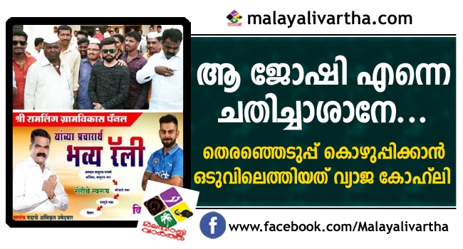 ഇതിനു സമാനമായ രംഗമാണ് മഹാരാഷ്ട്രയിൽ നടന്നിരിക്കുന്നത്. മഹാരാഷ്ട്രയിലെ ഷിരൂറില് രാമലിംഗ ഗ്രാമപഞ്ചായത്തിലാണ് സംഭവം. പഞ്ചായത്ത് തെരഞ്ഞെടുപ്പില് സര്പഞ്ച് ആയി മത്സരിക്കുന്ന വിത്തല് ഗണ്പത് ഗവാത്തെ എന്നയാള് തെരഞ്ഞെടുപ്പ് പ്രചരണാര്ഥം മെയ് 25ലെ റാലിയില് വിരാട് കോഹ്ലിയെ പങ്കെടുപ്പിക്കുമെന്നാണ് വാഗ്ദാനം നൽകിയത്