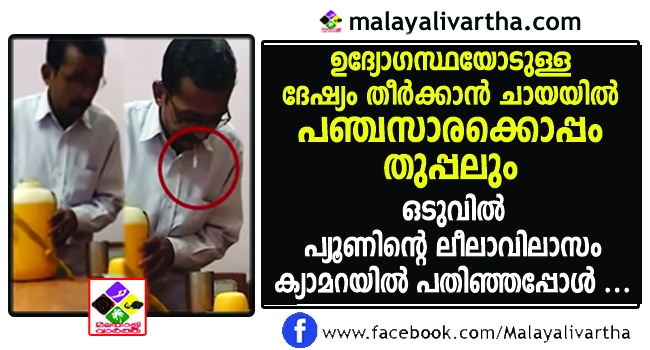 സര്ക്കാര് സ്ഥാപനത്തിലെ ഉദ്യോഗസ്ഥയും പ്യൂണും തമ്മിൽ വാക്ക് തർക്കം , ഒടുവിൽ വിരോധം തീർക്കാൻ ചായയിൽ തുപ്പിയ പ്യൂണിന് സംഭവിച്ചതോ ...