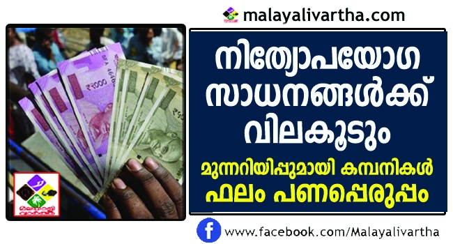 നിത്യോപയോഗ സാധനങ്ങള്ക്കു വില എട്ട് ശതമാനം വരെ കൂടും; മുന്നറിയിപ്പുമായി കമ്പനികള് സാധനങ്ങള്ക്ക് കൂടി വില വര്ധിച്ചാല് പിന്നെയുണ്ടാവുക പണപ്പെരുപ്പം