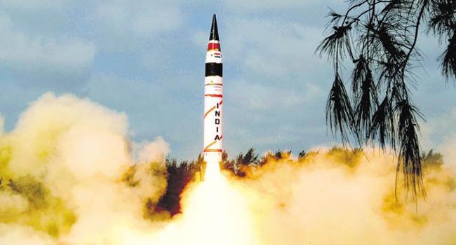 ആണവായുധം വഹിക്കാൻ ശേഷിയുള്ള ഇന്ത്യയുടെ ഭൂഖണ്ഡാന്തര ബാലിസ്റ്റിക് മിസൈൽ അഗ്നി-5 വിജയകരമായി പരീക്ഷിച്ചു. ഒഡീഷാ തീരത്തെ അബ്ദുൾകലാം ദ്വീപിൽ നിന്ന് രാവിലെ 9.48നായിരുന്നു മിസൈൽ പരീക്ഷണം. ഇത് ആറാം തവണയാണ് ഏറ്റവും കൂടുതൽ ദൂരം സഞ്ചരിക്കുന്ന ആണവ വാഹക ശേഷിയുള്ള മിസൈൽ ഇന്ത്യ വിജയകരമായി പരീക്ഷിക്കുന്നത്.