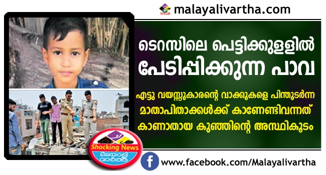 പതിനെട്ട് മാസം മുമ്പ് കാണാതായ നാല് വയസ്സുകാരന്റെ ദ്രവിച്ച മൃതശരീരം അയല്വാസിയുടെ ടെറസിനു മുകളിലെ മരപ്പെട്ടിയില്