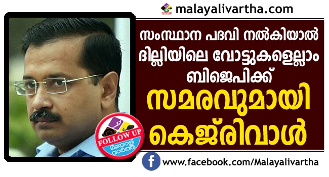 ഡല്ഹിക്ക് പൂര്ണ്ണ സംസ്ഥാന പദവി നല്കുകയാണെങ്കില് ദില്ലിയിലെ എല്ലാവോട്ടുകളും ബിജെപിക്ക് ഉറപ്പാക്കുമെന്ന് മുഖ്യമന്ത്രി അരവിന്ദ് കെജ്രിവാള് ; കേജരിവാളിന്റെ മനംമാറ്റത്തിൽ അന്തംവിട്ട് നേതാക്കൾ