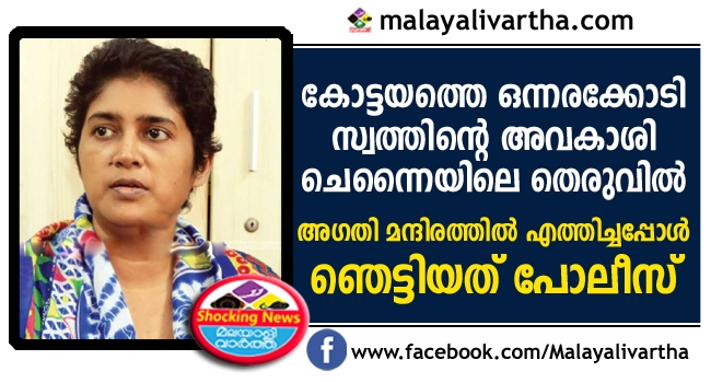 കോട്ടയത്ത് വൻ വിലയുള്ള ഭൂസ്വത്തിന്റ അവകാശി തെരുവിൽ; പ്ലസ് ടൂ പഠനം പൂർത്തിയാക്കിയതിന് പിന്നാലെ പ്രണയ വിവാഹം; മാസങ്ങൾക്ക് മുമ്പ് ഭർത്താവ് മരിച്ചതോടെ മനോനില തെറ്റിയ അവസ്ഥയിൽ ആരോരുമില്ലാതെ വഴിയരികിൽ: അഗതി മന്ദിരത്തിൽ എത്തിച്ച യുവതിയുടെ ചിത്രം ബന്ധു തിരിച്ചറിഞ്ഞതോടെ പുറത്തായത് ഞെട്ടിക്കുന്ന വിവരങ്ങൾ...