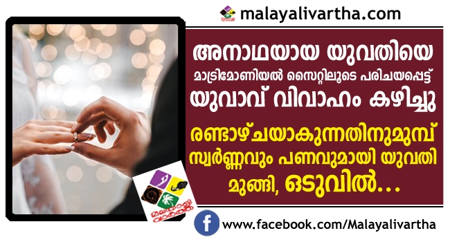 വിവാഹം കഴിഞ്ഞ് രണ്ടാഴ്ചയാകുന്നതിനുമുമ്പ് ഭര്ത്താവിന്റെ സ്വര്ണവും പണവുമായി ഭാര്യ മുങ്ങി, പിന്നെ സംഭവിച്ചത്...