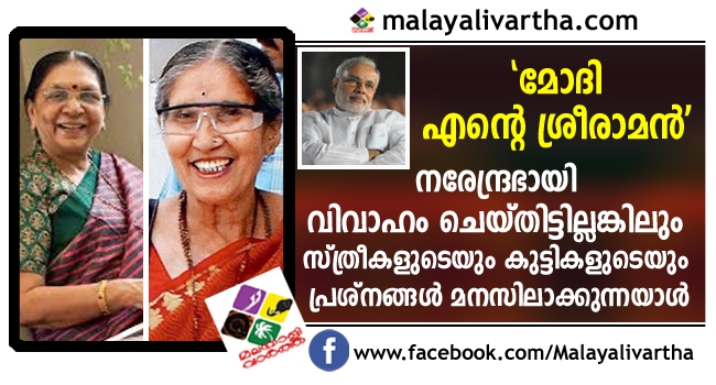 നരേന്ദ്ര മോദി വിവാഹം ചെയ്തിട്ടില്ലങ്കിലും സ്ത്രീകളുടെയും കുട്ടികളും പ്രശ്ന ങ്ങൾ മനസിലാക്കുന്നയാൾ ; പ്രധാനമന്ത്രി വിവാഹിതനല്ലെന്ന മധ്യപ്രദേശ് ഗവർണർ ആനന്ദിബെന്നിന്റെ പ്രസ്താവനയ്ക്കെതിരെ മോദിയുടെ ഭാര്യ യശോദ ബെൻ രംഗത്ത്