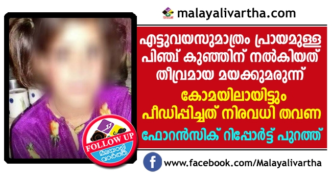ഡോക്ടര്മാരുടെ കര്ശന നിര്ദേശത്തോടെ മാത്രം മാനസിക രോഗികള്ക്ക് നല്കുന്ന ക്ലോണാസെപാം എന്ന വീര്യം കൂടിയ മരുന്നും പ്രാദേശികമായി ഉപയോഗിക്കുന്ന കഞ്ചാവിന് തുല്ല്യമായ മന്നാറും കൂടിയ അളവില് കുട്ടിക്ക് നല്കിയിരുന്നു.ഇക്കാരണത്താൽ കുട്ടി കോമയിലാകുകയായിരുന്നു. തുടർന്ന് അഞ്ച് ദിവസത്തോളം കുട്ടി അതി ക്രൂരമായ കൂട്ടബലാല്സംഗത്തിന് ഇരയാകുകയായിരുന്നു.