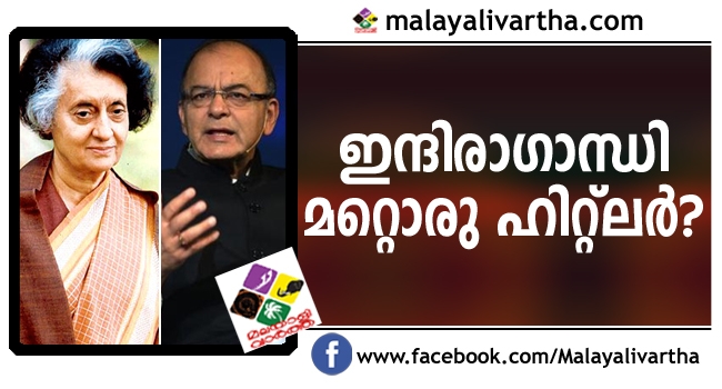 ഇന്ദിരയുടെ അസാധുവായ തിരഞ്ഞെടുപ്പ് സാധുകരിക്കാൻ ജനപ്രാതിനിധ്യനിയമം മുൻകാല പ്രാബല്യത്തോടെ ഭേദഗതി ചെയ്തു ; ഹിറ്റ്ലർ പോലും ചെയ്യാത്ത ചില കാര്യങ്ങൾ ഇന്ദിരാ ഗാന്ധി ഇന്ത്യയിൽ നടപ്പിലാക്കി ; ഇന്ദിരാഗാന്ധിക്കെതിരെ ശക്തമായ ഭാഷയിൽ വിമർശനവുമായി ധനമന്ത്രി അരുൺ ജെയ്റ്റ്ലി ; ജെയ്റ്റിലുടെ വാദങ്ങൾക്ക് പിന്തുണയുമായി പ്രധാനമന്ത്രി