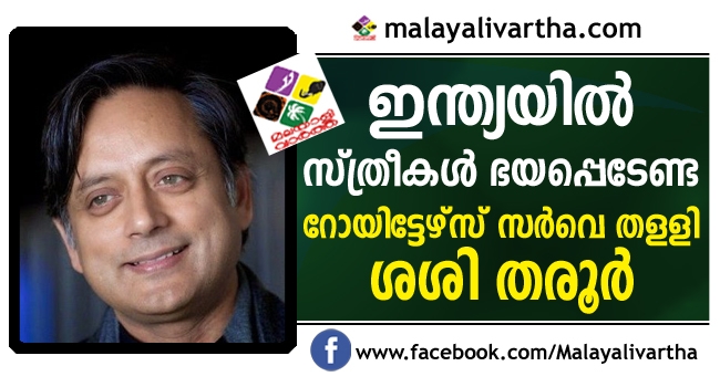 ലോകത്തിൽ സ്ത്രീകൾക്ക് ജീവിക്കാൻ ഏറ്റവും അപകടംപിടിച്ചതും സ്ത്രീകൾ സുരക്ഷിതരല്ലാത്ത രാജ്യവും ഇന്ത്യ; റോയിട്ടേഴ്സ് സർവെ തളളി ശശി തരൂർ