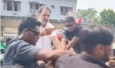 വാഹനത്തിന് മുകളില് ചാടിക്കയറാന് ശ്രമിച്ച പ്രതിഷേധക്കാര്ക്ക് നേരെ മിഠായി നീട്ടി രാഹുല്