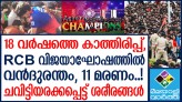 മുൻപ് മൂന്നു തവണ ഫൈനൽ കളിച്ചപ്പോഴും നഷ്ടമായ വിജയം വിരാട് കോലിക്കു വേണ്ടി ആർസിബി നേടിയപ്പോൾ ആരാധകർ എല്ലാം മറന്ന് അത് ആഘോഷിച്ചു. എന്നാൽ മണിക്കൂറുകൾക്കിപ്പുറം അവരെ കാത്തിരുന്നത് രാജ്യത്തിന്റെ കായിക ചരിത്...