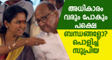 ഉപമുഖ്യമന്ത്രിയായി ബിജെപിയ്ക്കൊപ്പം ചേര്ന്ന അജിത് പവാറിനെ പരിഹസിച്ച് ശരത് പവാറിന്റെ മകള് സുപ്രിയ; അധികാരം വരും പോകും, ബന്ധങ്ങളാണു വിഷയം; വാട്സ്ആപ് സ്റ്റാറ്റസായാണു സുപ്രിയ നിലപാട് അറിയിച്ചത്; സുപ്രിയയുടെ സ്റ്റാറ്റസ് ഏറ്റെടുത്ത് ലോകം